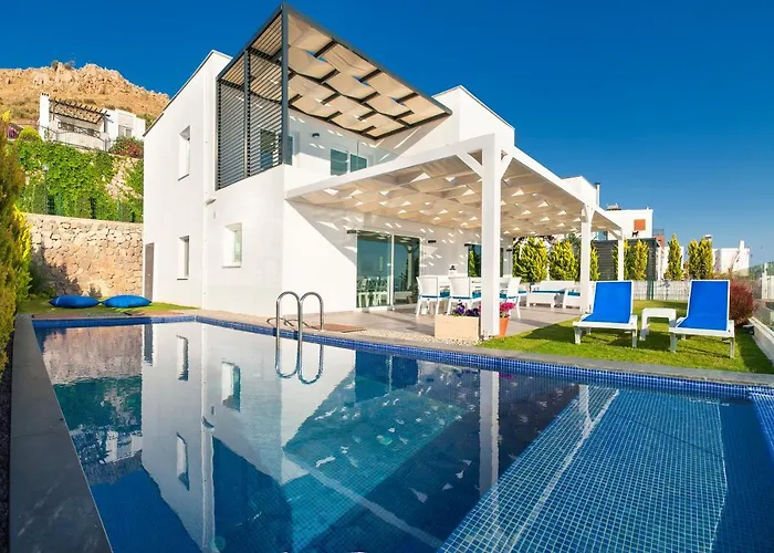 Offering an opportunity to unwind in an outdoor pool, Bodrum Horizon Villas provides a safe deposit box and 24-hour security to ensure safety. Featuring a car park, the Bodrum villa is located approximately 10 minutes by car from cavus island.